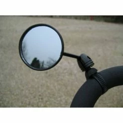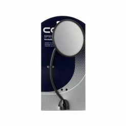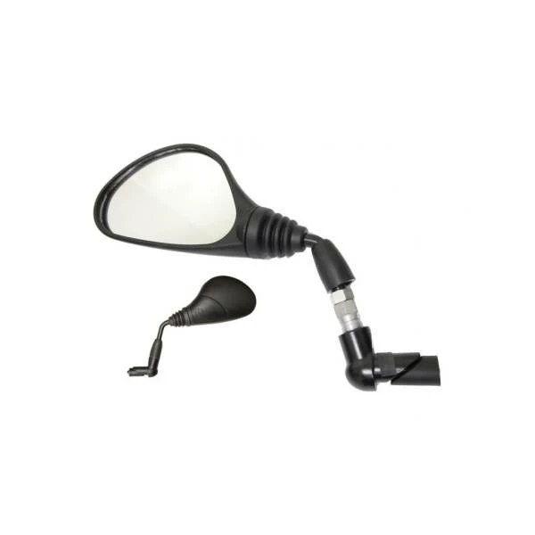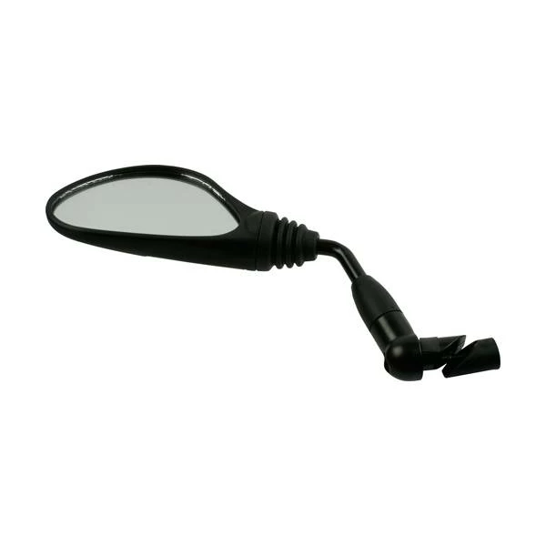 Presentatieverpakking, zwart, kunststof behuizing, verkleinend glas, omklapbaar in beide richtingen – ook toegestaan voor snelle E-fietsen, stabiele alu bevestiging aan binnenzijde stuur, met europees keurmerk korte gebogen stang