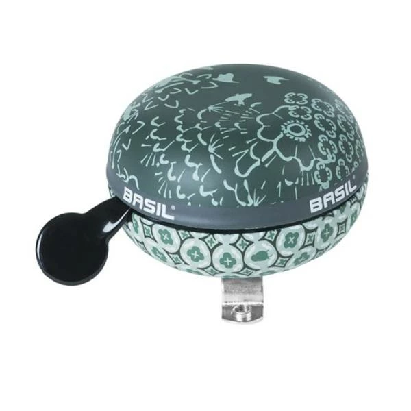 De Basil Big Bell Boheme is een groene ding dong fietsbel met een elegante bohemien print.