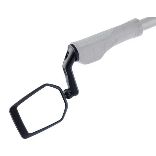 De speciale klem bevestigt de spiegel rechtstreeks aan het stuur, waardoor de cockpit zeer overzichtelijk blijft.