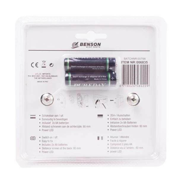 Universeel toepasbaar achterlicht met reflector, LED en schakelaar.