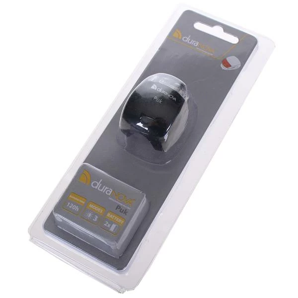 Dankzij de siliconen band kunt u het achterlicht overal gemakkelijk monteren. De DuraNova Puk werkt op 2 CR2032 batterijen.
