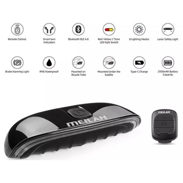 Het achterlicht is te bedienen met een afstandsbediening en heeft 8 lichtstanden.