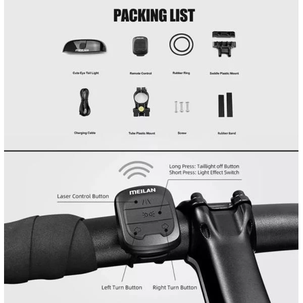 Dit Meilan laser achterlicht USB Cute Eye is te monteren aan de zadelpen of onder het zadel.