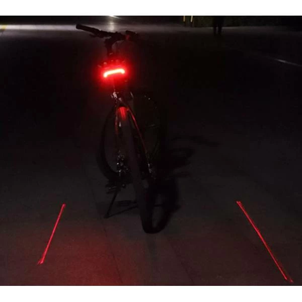 De laser wegmarketing van het achter bevat twee rode laser lampen, welke op het asfalt schijnen voor extra zichtbaarheid.