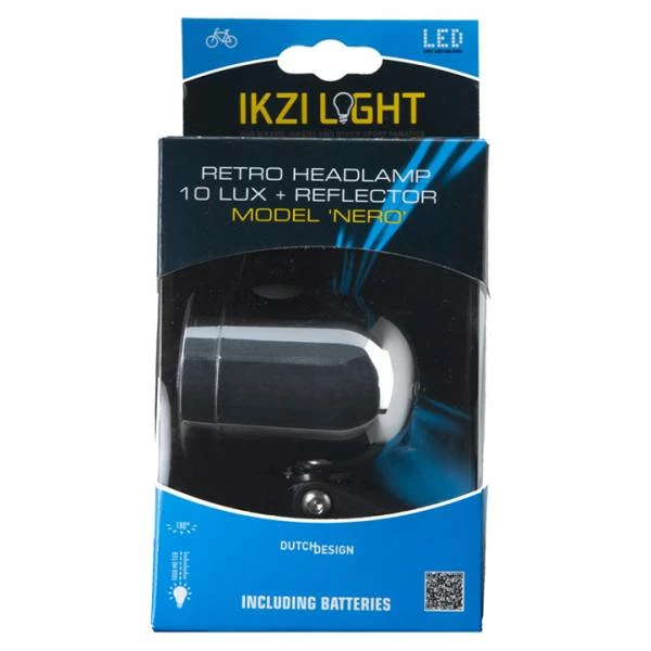 Deze elegante chromen LED-koplamp van IKZI is uitgevoerd in een retrostijl die perfect is voor de stadsfiets. De IKZI Koplamp Nero heeft een lichtopbrengst van 10 lumen and garandeert zichtbaarheid tot op 1000 meter afstand. Inclusief 4 AAA-batterijen.