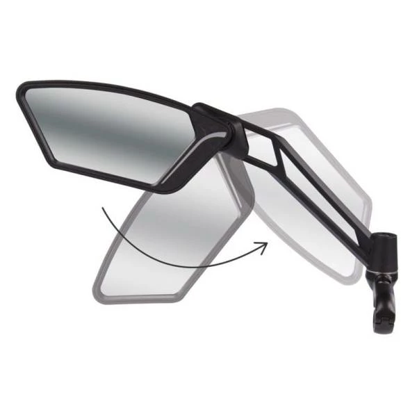 De spiegel is in lengte en hoek verstelbaar en kan ook nog worden ingeklapt als de fiets opgeborgen staat.