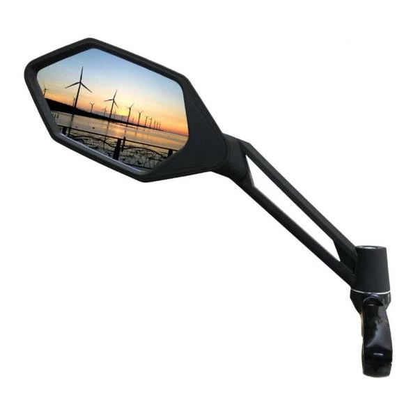 Met een aluminium klem aan het stuur blijft de spiegel stevig vast zitten.
